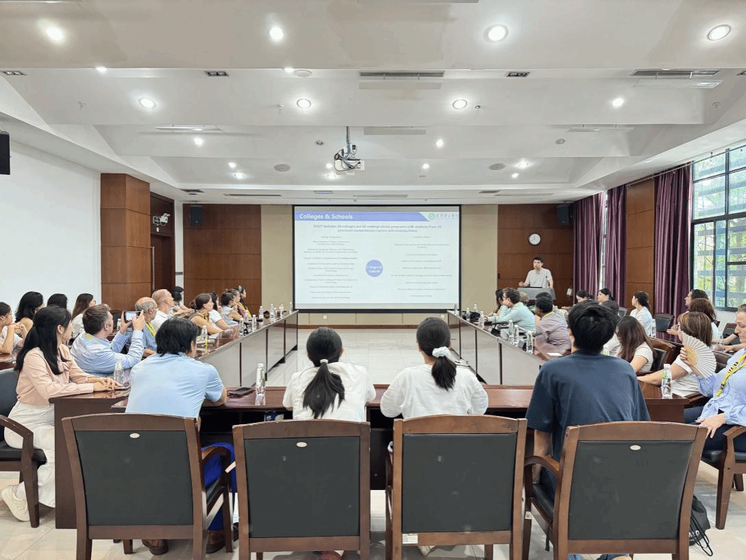 随后,代表团参与公司国际化总体情况介绍会。会上,校国交部朱子奇老师详细介绍公司国际化办学规划、重点合作项目及建设成效;紧接着,代表团与公司员工围绕专业学习、跨校合作等话题展开深入交流座谈,积极交换意见与看法,现场互动频繁、氛围热烈。