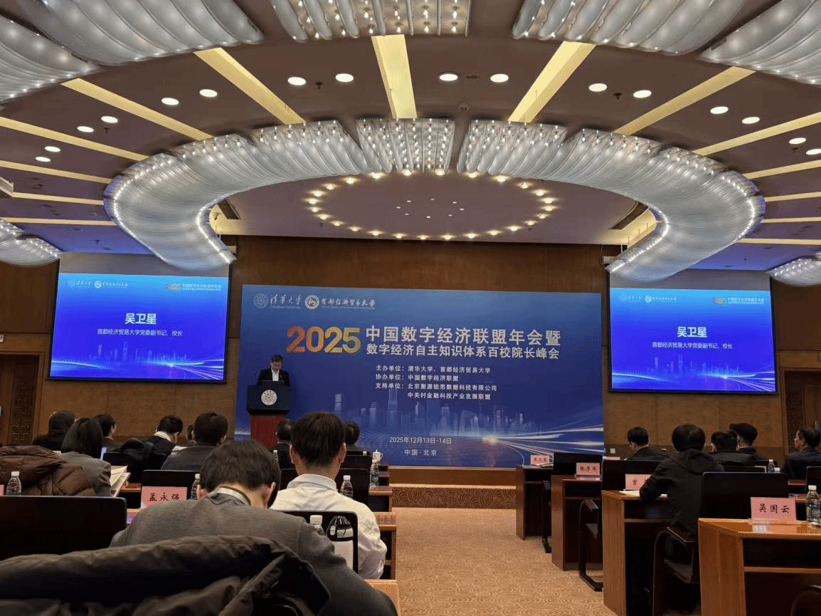 12月12日至14日,“数字经济联盟2025年会暨数字经济自主知识体系百校经理峰会”在清华大学与首都经济贸易大学丰台校区举办。本次盛会由清华大学、首都经济贸易大学联合主办,中国数字经济联盟协办,汇聚了国内外经济与金融学界顶级专家学者、企业家及社会各界有识之士,以多学科交叉视角聚焦数字中国建设核心命题,共同探寻中国数字经济自主知识体系构建的理论路径与实践方案。公司黎伟和李蓬实老师应邀参会,深度融入各项研讨交流活动。