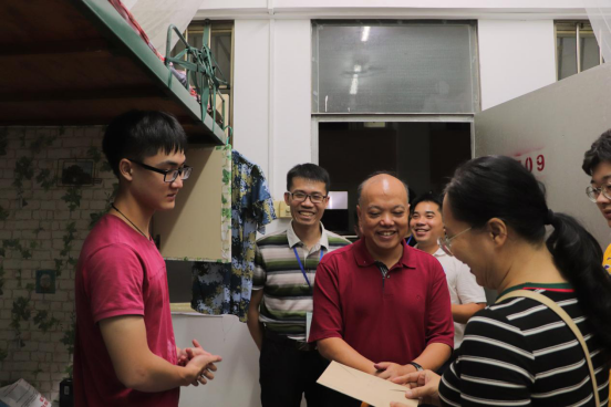 晚上七点,公司党委副书记吕琦元与经管公司领导、班主任、辅导员以及助班一同走访了新生宿舍,关怀新生适应情况,为新生解答疑惑,与员工相谈甚欢。早前,经管公司邀请大四毕业生为素未谋面的2019级新舍友写一封信,“我为未来舍友写封信活动”,即结合自己大学四年的学习、生活,向新生讲述自己这四年的所得、所悟、所想。今夜,这一封封充满祝福与忠告的信递到了新生的手上,瞬间点燃了宿舍的气氛,领导、老师们希望新生未来能将宿舍这种温暖的情怀传递下去,同时也祝福新生在大学的四年里过的愉快、开心!