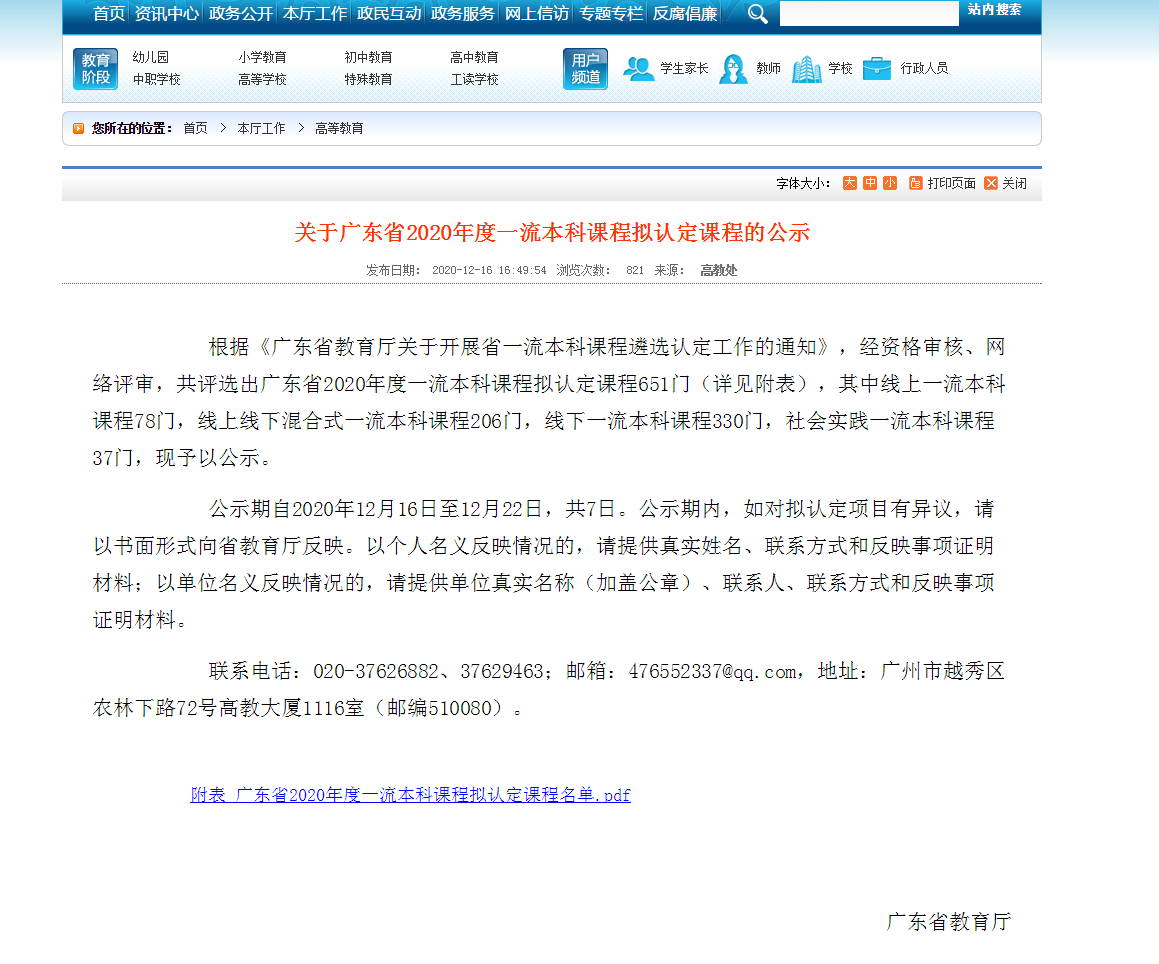 根据《广东省教育厅关于开展省一流本科课程遴选认定工作的通知》,经资格审核,网络评审,共评选出广东省2020年度一流本科课程拟认定课程651门。其中公司刘继云经理《微观经济学》榜上有名