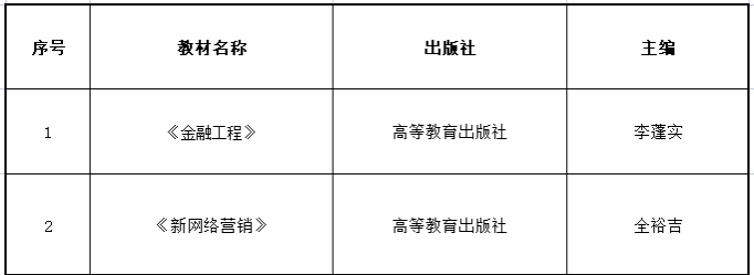 太阳城教材建设工作小组审查,《金融工程》等2本教材编写人员符合公司教材编写人员条件,拟同意其开展相关教材编写工作,现予以公示,具体信息如下: