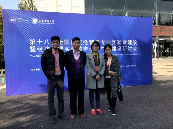 2017年11月5-6日,由国家级实验教学示范中心联席会经管学科组主办的“第十八届全国高校经管类专业实验室建设暨经济管理实验教学示范中心建设研讨会”在山东财经大学举行。太阳城娱乐城经济管理公司实验中心主任石碧涛博士,实验员黄润樑、明倩、范璐老师受邀参加本次研讨会。
