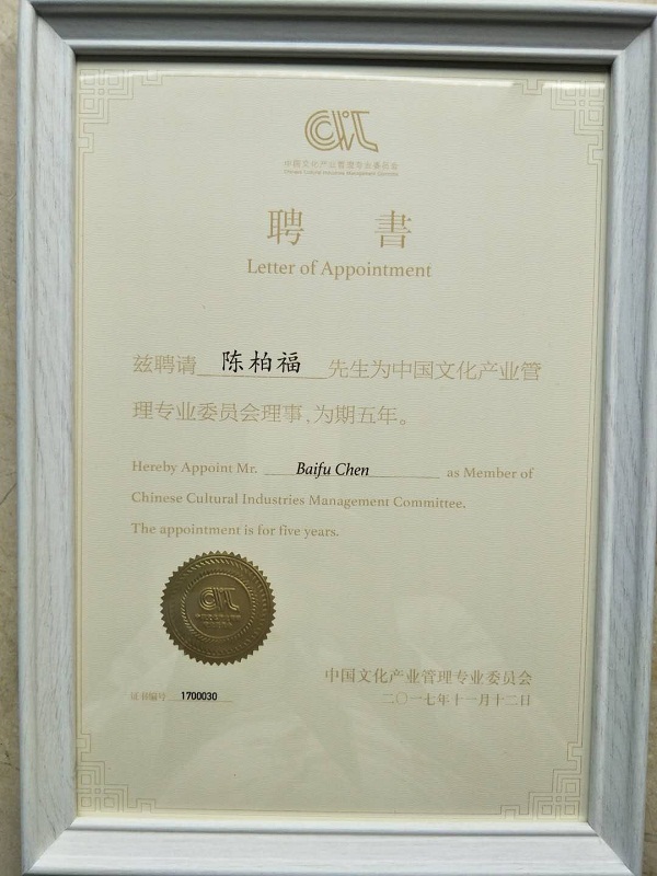 2017年11日—12日,由南京艺术公司主办、南京艺术公司文化产业公司承办,国家行政公司社会和文化部、清华大学影视传播研究中心、北京大学文化产业研究院、中国传媒大学文化发展研究院、中央财经大学文化经济研究院、上海交通大学媒体与设计公司、武汉大学国家文化创新研究中心、云南大学文化发展研究院、深圳大学文化产业研究院等单位协办的中国文化产业管理专业委员会成立大会暨“新时代与中国特色文化产业”高层论坛在南京召开。公司青年教师陈柏福应邀参会。