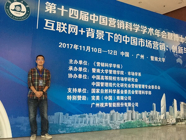 11月10日,经管公司李政达博士赴广州参加2017 JMS中国营销科学学术年会暨博士生论坛,该会议于2017年11月10日至12日于广州暨南大学举行,会议旨在为研究者和实践者提供一个互动交流平台,探讨互联网+背景下的中国市场营销:创新与理论的想法和做法。