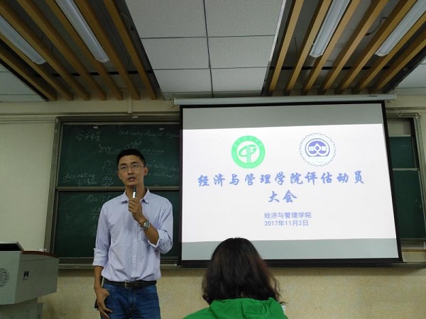 为了积极做好本科教学工作审核评估,经管公司领导班子高度重视,2017年11月2日下午,经管公司在莞城校区3309召开本科教学工作审核评估动员会,公司全体教师参加本次会议。会议围绕“如何做好迎接专家评估的工作”展开工作部署。刘继云经理在会上作出重要指示,全体教师必须高度重视评估工作,做好每个环节的工作,有计划地开展评估工作,掌握好工作进度,以迎接专家的评估。