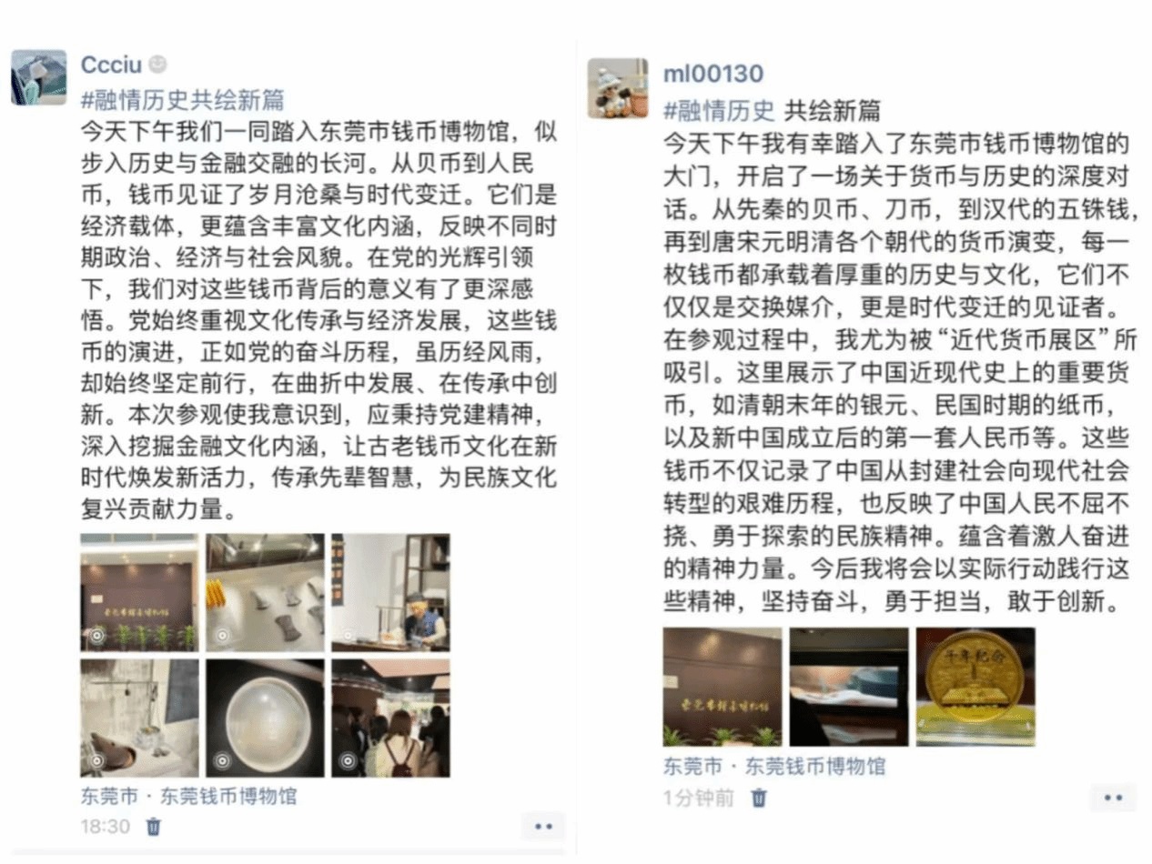 活动中,党员们纷纷用镜头记录下自己的学习心得与感悟,朋友圈配图不仅展示了博物馆内丰富的展品与党员们专注学习的身影,更传递出他们对货币文化的深刻理解与对高质量充分就业的深刻思考。许多党员还在朋友圈中分享心得体会,表达对国家经济发展与个人职业规划的新认识,以及对如何发挥专业优势促进高质量充分就业的新思路。