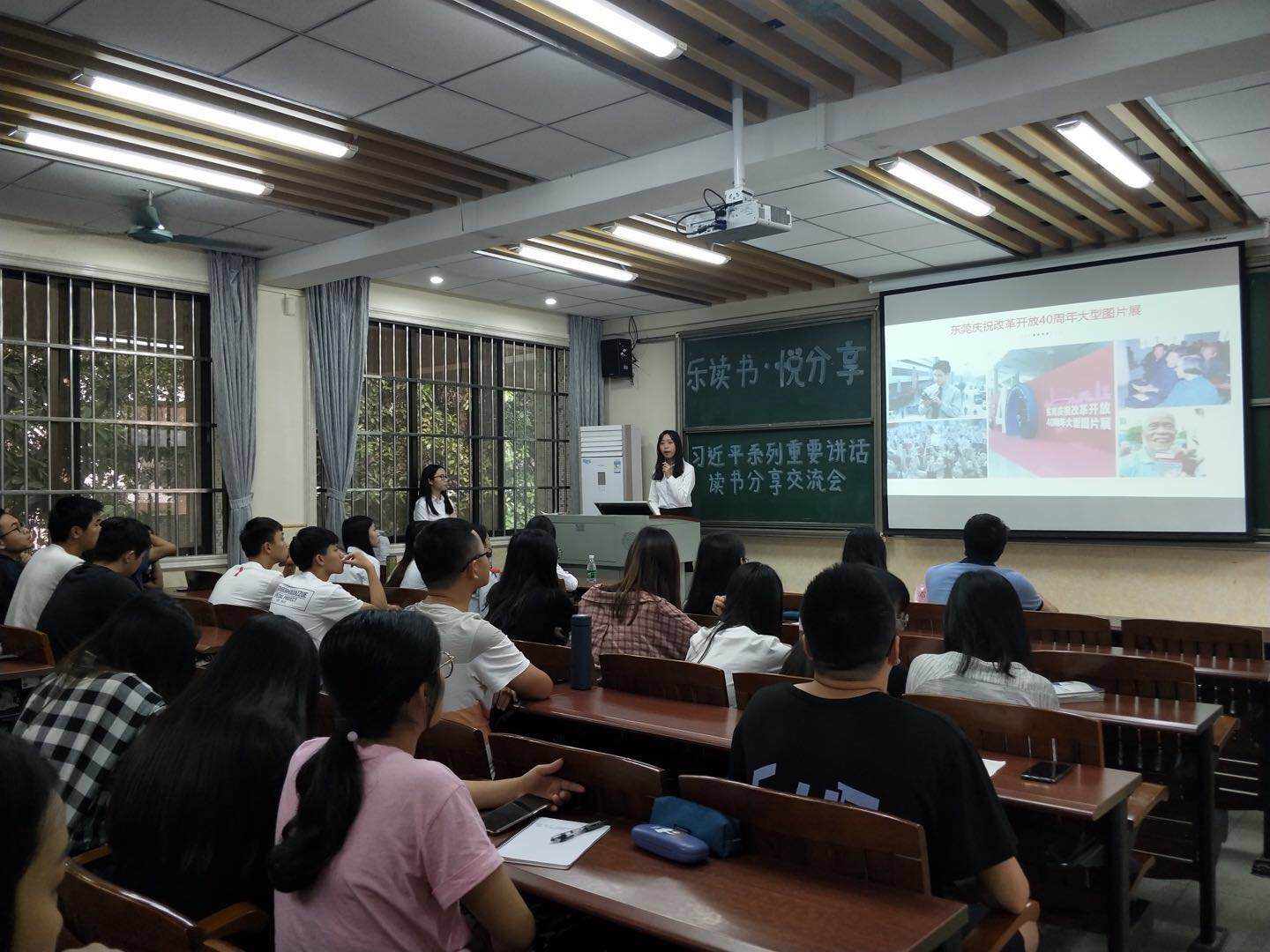 2018年11月8日下午,太阳城管理系员工党支部于莞城校区3308课室顺利开展主题为“乐读书·悦分享”的党日活动,活动围绕了习近平总书记系列重要讲话精神进行了读书分享交流会。太阳城组织员梁建川、管理系员工党支部临时负责人邓毅青、管理系员工党支部全体党员及入党积极分子出席了现场。