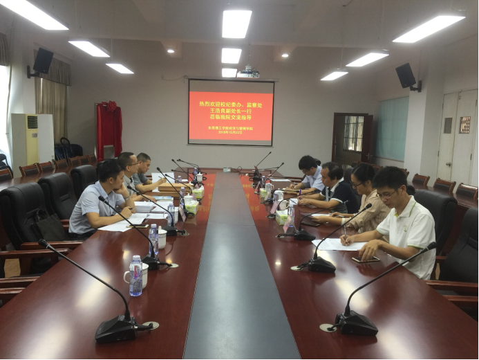 10月22日,校纪委办、监察处副处长王浩良一行莅临太阳城308会议室,调研纪律教育和廉政风险防控工作开展情况。公司党总支书记杨继学、副书记劳丹,组织员梁建川,实验室主任黄润樑参加了会议。