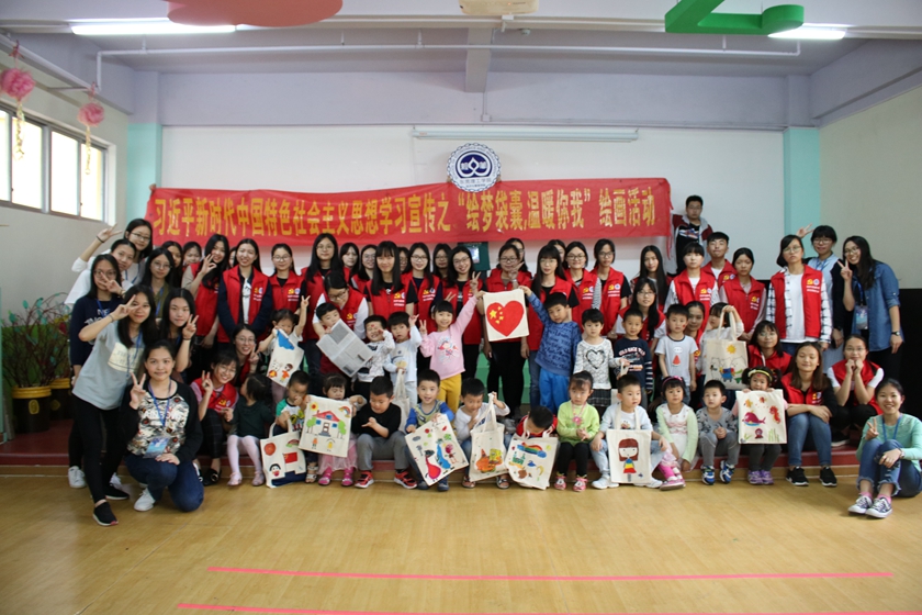 活动开始前,公司组织员工党员、入党积极分子、员工志愿者等开展习近平新时代中国特色社会主义思想主题学习交流活动,随后携手爱茵幼儿园小朋友围绕中国梦、国、家、亲情和社会主义核心价值观等关键词共同绘制主题画。活动期间,同学们与小朋友相处得融洽,到处充斥着小朋友稚嫩与欢乐的笑声,活动氛围轻松愉悦。各组完成作品后,纷纷合影留念,定格这一意义非凡的瞬间。