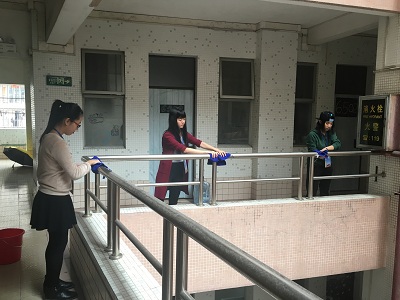 伊始,党员社区服务站的工作人员为参与者们讲解活动安排和分发活动物资。随后,参与者每三人为一组,分别负责擦拭各大社区的走廊栏杆,员工党员及入党积极分子们在劳动中奉献自己,进一步改善了员工社区的环境面貌,为同学们营造优美洁净的居住环境。