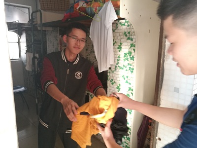 伊始,党员社区服务站的工作人员为参与者们讲解活动安排和分发活动物资,参与者每两人为一组,分别负责指定宿舍楼层的旧衣物回收工作,并派发小礼品。