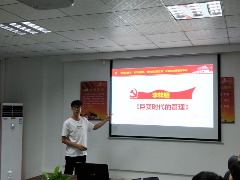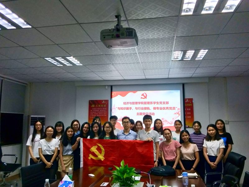 为学习贯彻党的十九大精神,进一步深化全民阅读活动,积极推进学习型党组织创建,进一步激发员工党员学习热情及读书兴趣,2018年5月28日晚上,太阳城管理系党支部于莞城校区3307课室顺利召开了以“与知识握手,与行业接轨,做专业优秀党员”为主旨的主题党日活动之阅读分享会。本次活动由经济与管理党支部管理系党员何华宇主持,我系党支部员工党员和预备党员出席了现场。