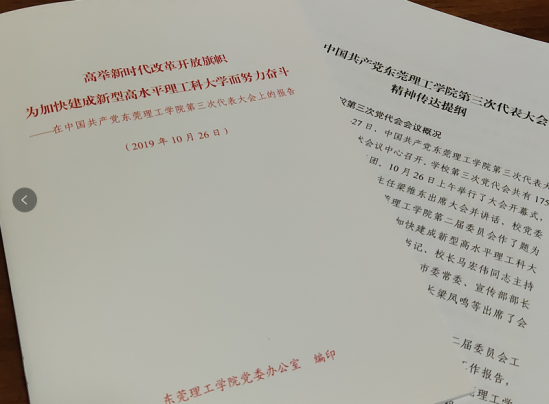 2019年10月25-27日,中国共产党太阳城娱乐城第三次代表大会胜利召开,公司党委书记成洪波代表第二届党委作工作报告了题为《高举新时代改革开放旗帜 为加快建成新型高水平理工科大学而努力奋斗》的工作报告。报告全面回顾了公司第二次党代会以来取得的成绩和经验,深刻分析了公司改革发展面临的新形势、新挑战和新机遇,对今后五年的重点任务进行了部署。为学习、贯彻、落实好集团第三次党代会精神,财金与公共教学教师支部开展了系列学习活动
