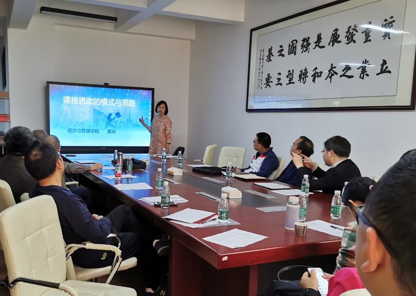 黄琼书记强调,课程思政的最高境界-争夺话语权,比如当代经济学是以西方主流经济学为基础建立的,西方经济学尽管在理论上存在不少缺陷,但仍具有一定的实用性,在一定程度上揭示了经济的基本规律;同时它也反映了发达资本主义国家特殊的阶级利益、制度属性和意识形态。因此,任课老师要善于把马克思主义的资源、中华优秀传统文化和西方经济学取得的积极成果融通起来,形成有中国特色的社会主义经济学。要教育员工用马克思主义的观点、立场和方法来全面系统地学习和评价西方经济学,达到东西方文明交流互鉴、明辨笃行的教学目的。最后,黄琼书记和支部教师党员交流了讨论课(翻转课题)的流程设计和大学数学课的课程思政导入模式。