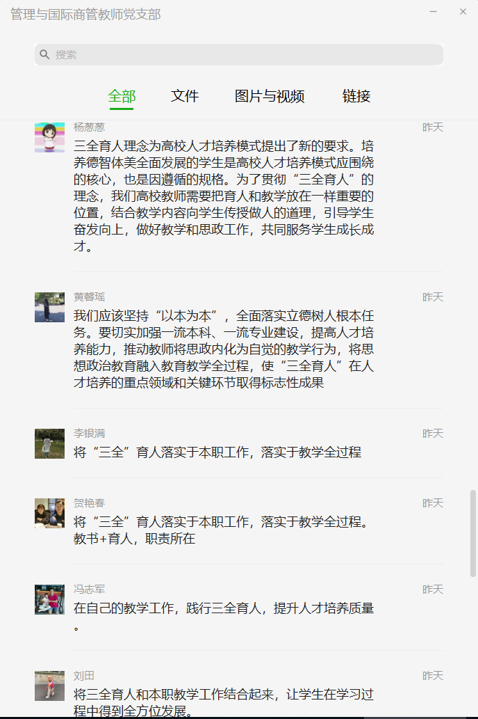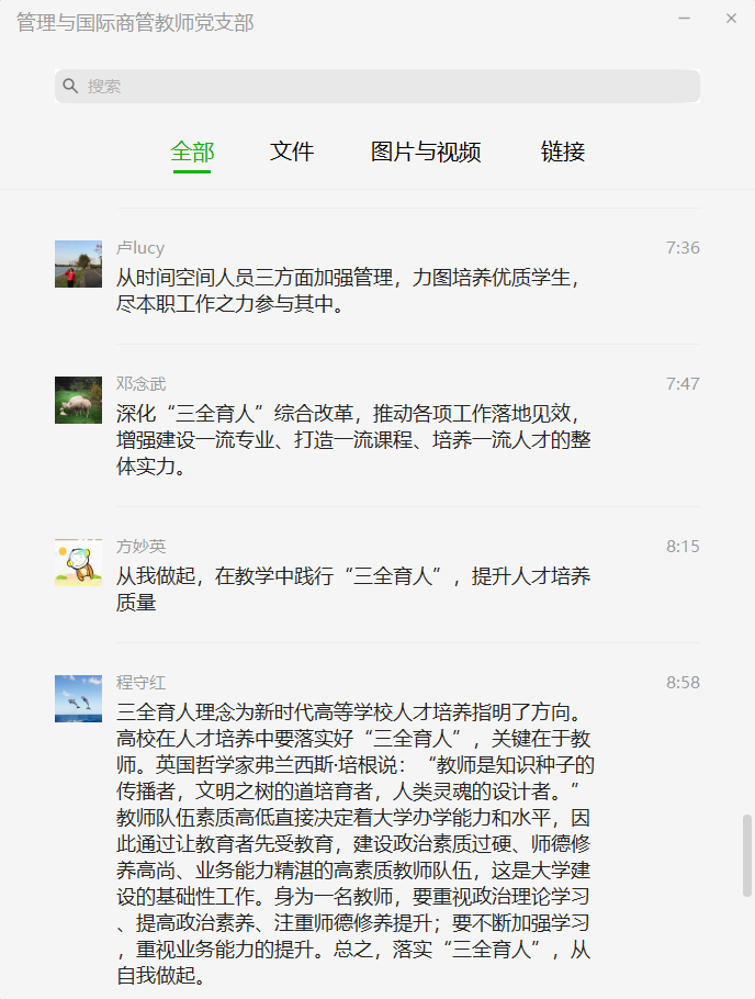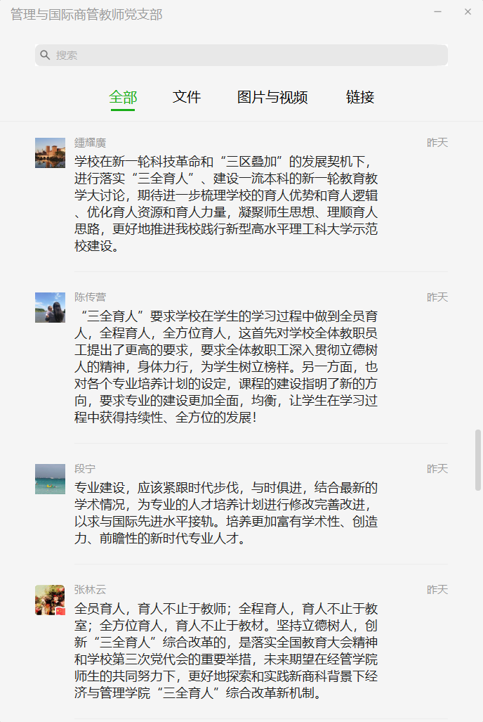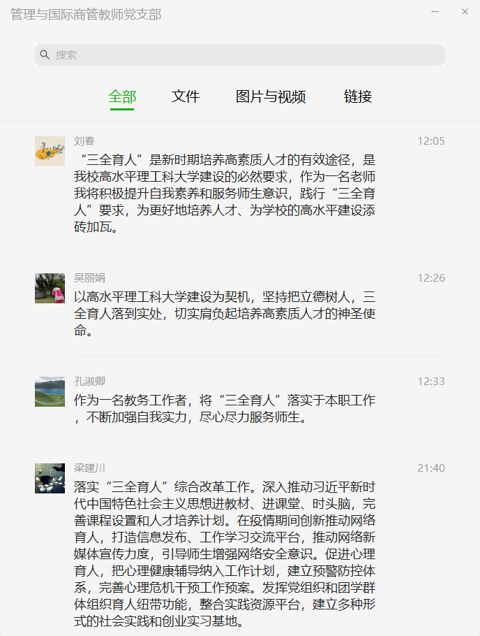 中共中央、国务院《关于加强和改进新形势下高校思想政治工作的意见》提出,坚持全员全过程全方位育人。为更好地落实立德树人任务,推进“三全育人”综合改革,在公司党委的部署下。2020年4月28日,管理与国际商管教师党支部于线上开展“落实‘三全育人’建设一流本科”公司产品大讨论动员会。