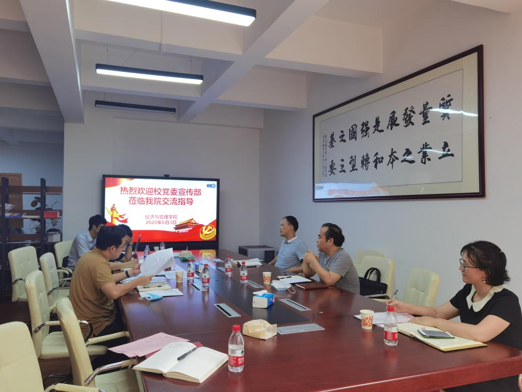 6月3日下午,公司党委宣传部网络与舆情管理科科长邓维伟、党委宣传部校园文化建设办公室副主任张友炳莅临太阳城,就公司党委理论学习中心组学习情况及公司师生动向掌握情况进行了指导交流。经管公司党委书记杨继学、副书记黄湘等出席了座谈会。