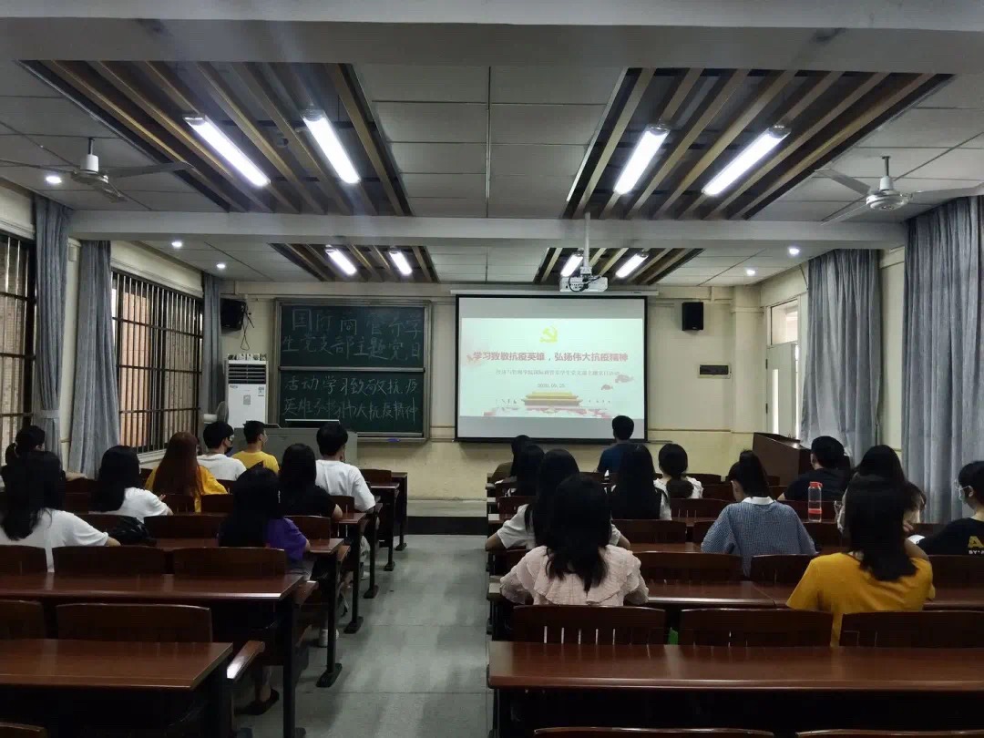 为深入学习习近平总书记在全国抗击新冠肺炎疫情表彰大会上的重要讲话精神,贯彻落实中组部“学习身边榜样”活动,2020年9月25日下午,太阳城国际商管系员工党支部于莞城校区3208课室开展了“学习致敬抗疫英雄,弘扬伟大抗疫精神”主题党日活动。本次活动旨在引导员工党员进一步向抗疫英雄学习,弘扬抗疫精神,培养员工党员的责任感,发挥员工党员的先锋模范作用,打赢校园防疫抗疫攻坚战。国际商管系员工党支部书记付小全老师、委员熊涛老师、刘欣颖老师及支部全体员工党员出席了本次活动。