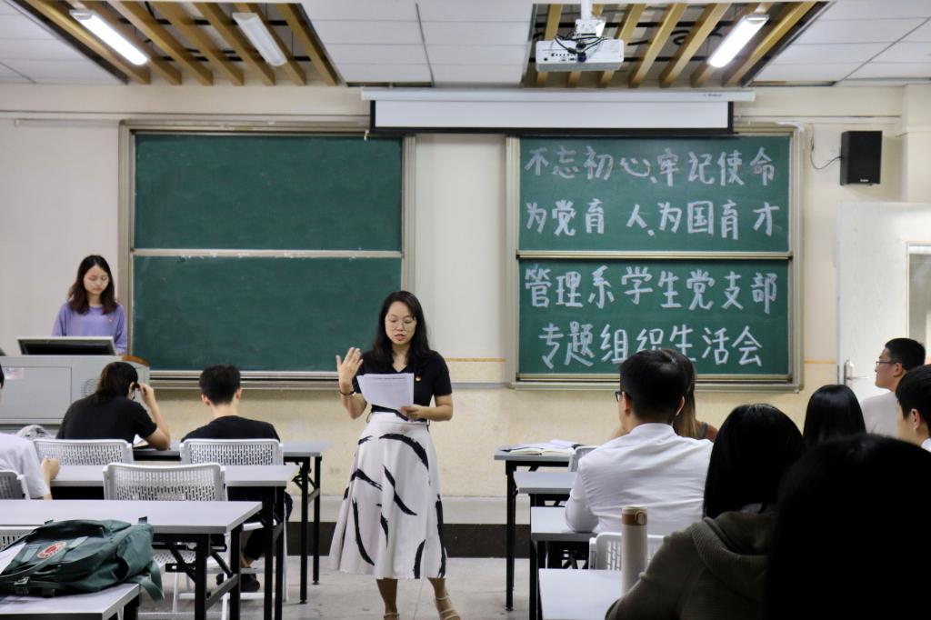 管理系员工党支部书记邓毅青代表支部进行对照检查并带头进行自我对照检查,开展自我批评。她指出支部党员目前还存在理论功底不够、运用理论指导实践不够、工作创新性不足等问题,要求进一步强化理论学习,增强理论素养,发挥先锋模范作用,积极为公司和公司作贡献。