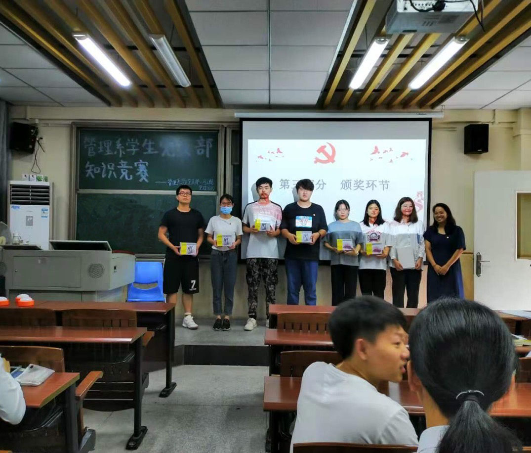 为深入学习贯彻习近平新时代中国特色社会主义思想和党的十九大精神,进一步落实基层党支部会议“第一议题”制度,提升员工党员的理论修养。11月19日下午,太阳城管理系员工党支部开展了“学习新思想 筑梦新时代”主题党员知识竞赛活动,管理系员工党支部书记邓毅青老师及全体员工党员参加了活动。