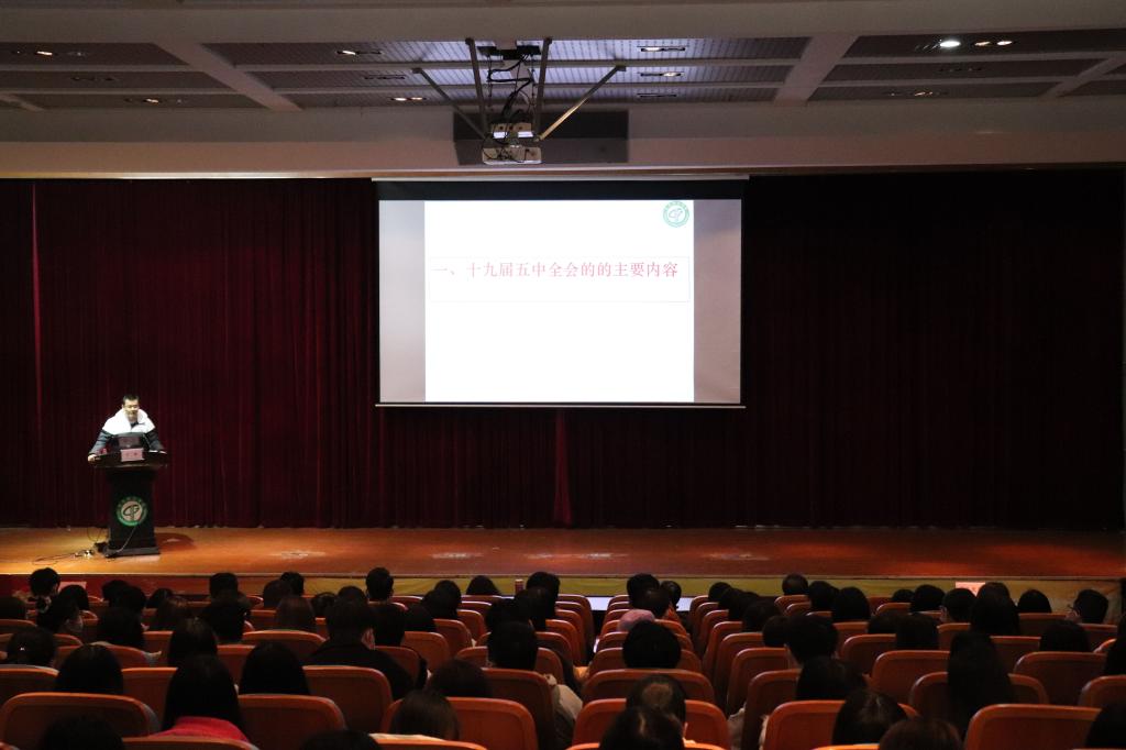 为进一步深入学习贯彻党的十九届五中全会精神、习近平总书记出席深圳经济特区建立40周年庆祝大会和视察广东重要讲话重要指示精神,2020年12月17日下午,莞城校区党工委、公司党委于莞城校区学术报告厅联合开展了学习贯彻党的十九届五中全会精神宣讲会。宣讲会邀请了公司宣讲团成员王敏作主讲嘉宾,莞城校区党工委、公司党委全体教职工、员工党员出席了现场。