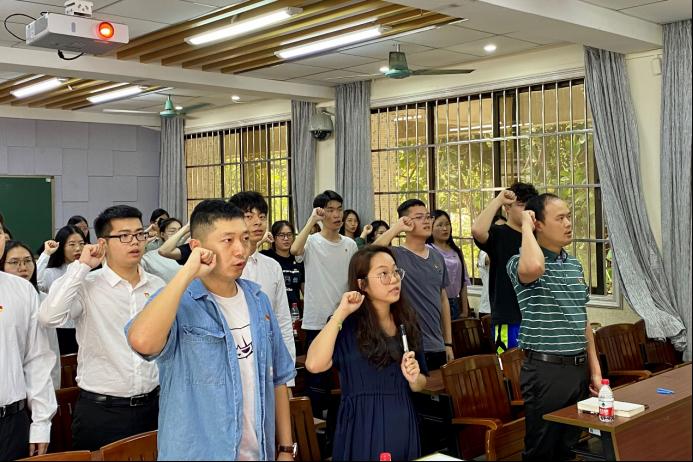 会上,党支部书记邓毅青带领新党员庄严宣誓、老党员重温誓词。每位党员同志都用发自内心的声音抒发对党忠诚的决心,面对着党旗,大家接受了一次身心的特殊洗礼。