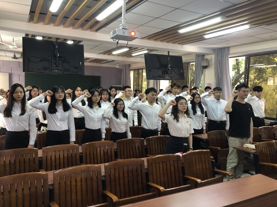 大会由支部书记叶琦玮同志主持。会议伊始,支部委员会报告了审查情况,支部正式党员综合所有入党积极分子、发展对象的个人情况与表现对是否接收其入党进行了无记名投票表决,并宣读2020年转预备及转正名单。随后,47名新发展的预备党员和正式党员面对党旗,由支部书叶记琦玮同志领誓,老党员重温入党誓词,全体新党员进行了庄严的入党宣誓仪式。中国共产党入党誓词以精练的语言高度概括了党对党员的要求,也概括了党员对党组织和党的事业所承担的政治责任,并具有党规党法的性质。入党誓词对每个党员都具有约束力。