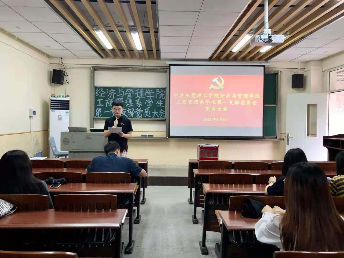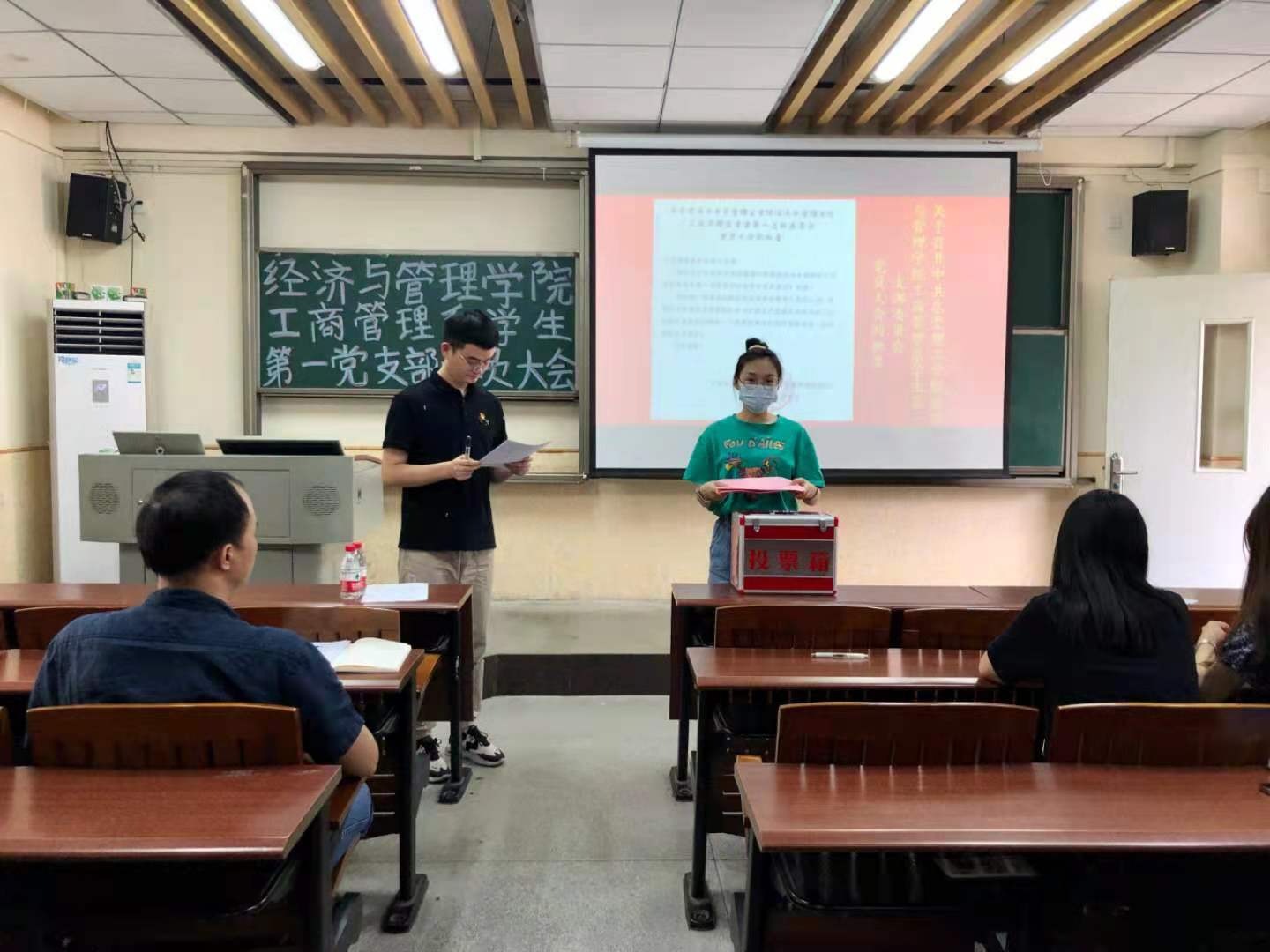 2021年5月6日下午,太阳城工商管理系员工第一党支部于莞城校区3309课室顺利召开支部党员大会进行换届选举,公司党委副书记黄湘、工商管理系员工第一党支部临时负责人刘文渊以及支部全体员工党员出席了本次大会。