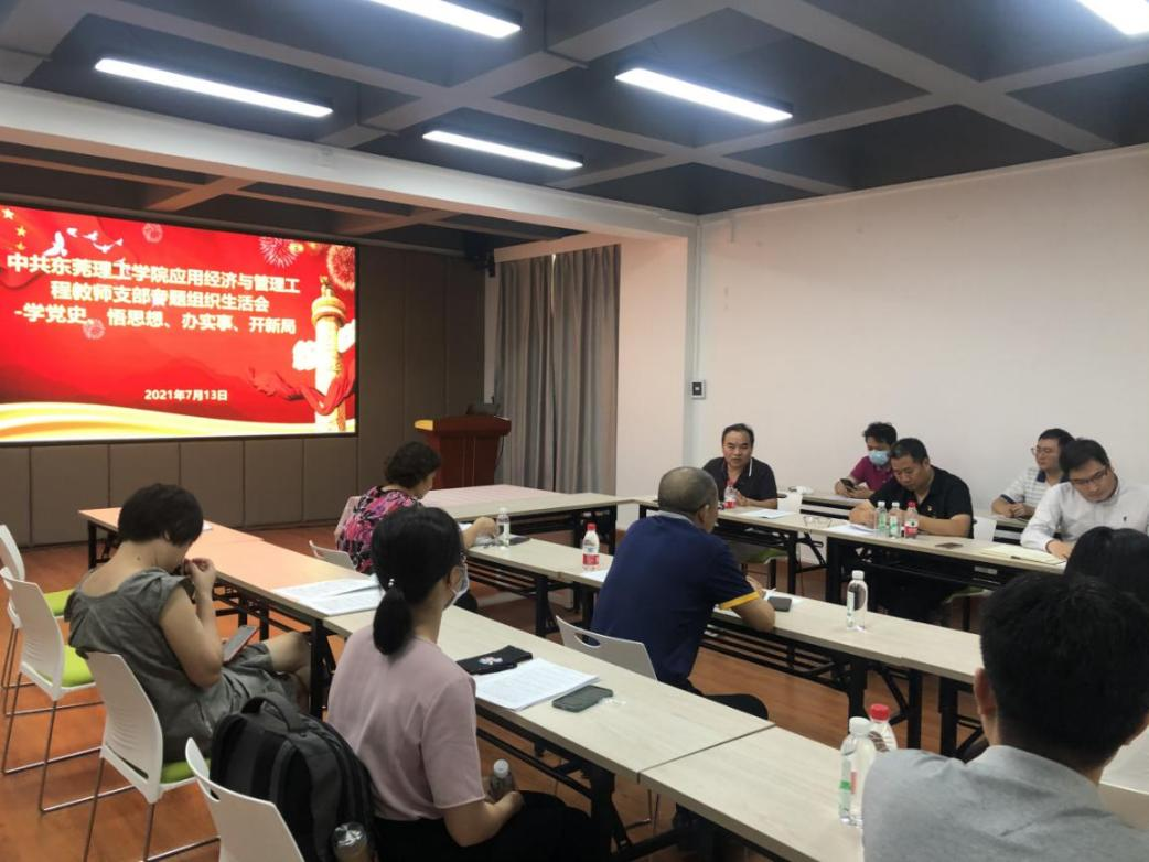 2021年7月12日,太阳城应用经济与管理工程教师党支部于莞城校区4520召开了“学党史、悟思想、办实事、开新局”党史学习教育专题组织生活会,支部全体党员参与了会议。