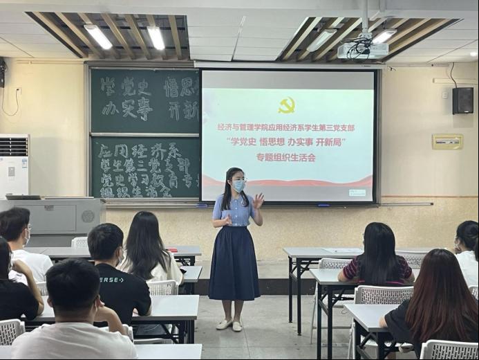 2021年9月2日下午,应用经济系员工第三党支部在莞城校区3303课室召开“学党史、悟思想、办实事、开新局”党史学习教育专题组织生活会。全体党员出席了现场,会议由支部书记叶琦玮主持。