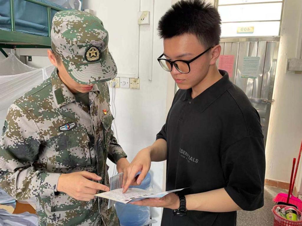 胡汉武同志和赵东岳同志以退役士兵的身份,重着军装,向新生讲解参军入伍政策,以自身经历激励新生积极响应祖国号召,燃起从军报国之志,携笔从戎投身强军事业。