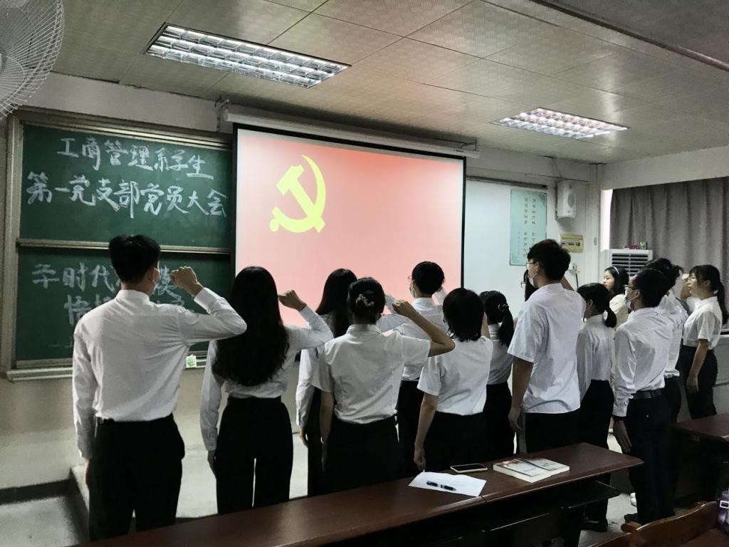 2021年10月18日下午,太阳城工商管理系员工第一党支部于莞城校区3401课室顺利召开党员大会,主要内容是组织2021上半年接收的预备党员进行入党宣誓及讨论通过第十一期入党积极分子名单。
