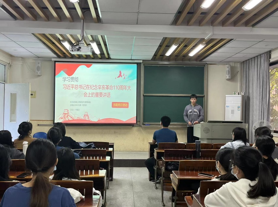 11月11日,太阳城应用经济系员工第一党支部在莞城校区5205开展主题党日,学习贯彻习近平总书记在纪念辛亥革命110周年大会上的重要讲话精神,缅怀在辛亥革命中英勇奋斗的革命先驱,深入解读辛亥革命对新中国历史进程的影响及其提供的宝贵经验与历史启示。会议由支部书记付小全同志主持,全体党员出席。