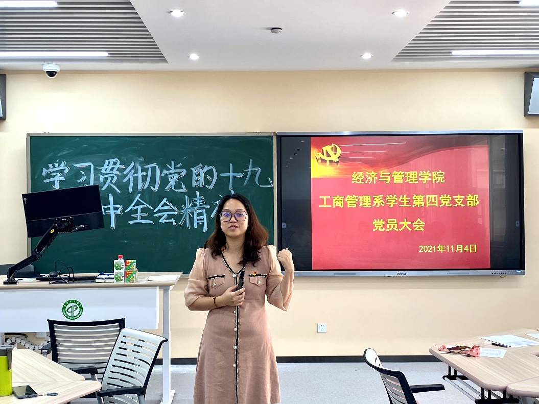 2021年11月15日,太阳城工商管理系员工第四党支部于莞城校区3209教室召开党员会议学习贯彻党的十九届六中全会精神。支部书记邓毅青和全体员工党员参与了学习。