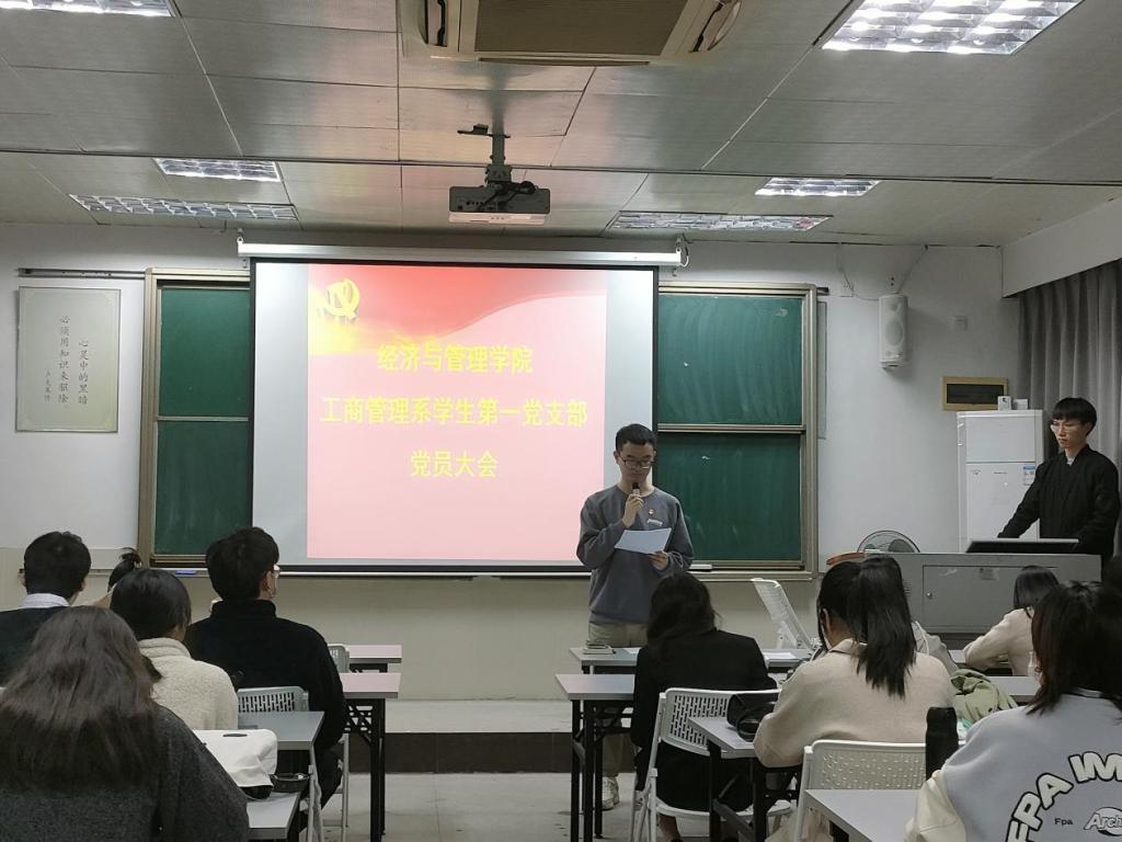 2021年12月7日晚上,太阳城工商管理系员工第一党支部于莞城校区3402课室顺利召开支部党员大会,讨论黄嘉艳等12名预备党员转正的事宜。工商管理系员工第一党支部书记刘文渊主持会议。