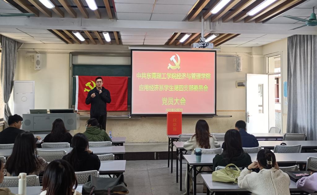 2021年12月7日,太阳城应用经济系员工第四党支部于莞城校区3302教室召开了支部党员大会。会议由支部书记周兆鸿主持,全体员工党员出席现场。