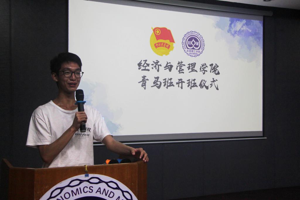 晚上7点开班仪式正式开始,活动伊始经管公司员工会执行主席邓仲希向各个学员介绍青马班的基本情况,随后,刘文渊老师上台表达对学员的期望,勉励学员们积极学习,勇于实践,不断提高自身素质。然后青马班学员张紫燕上台发言,分享自己的学习目标,号召同期学员将学习到的知识应用于学习生活中。本次开班仪式到此圆满结束