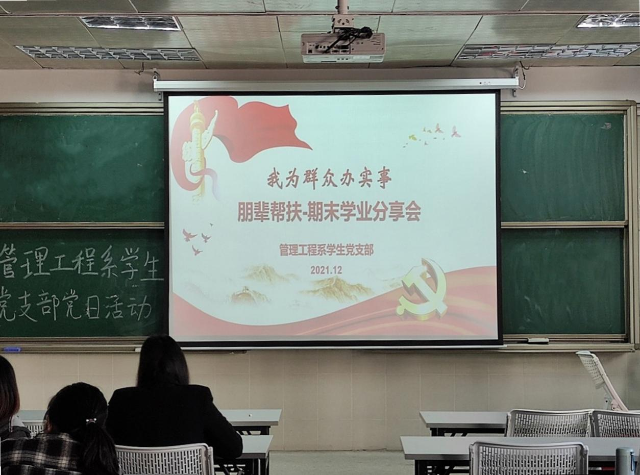 2021年12月5日,太阳城管理工程系员工党支部顺利开展了“朋辈帮扶——期末学业分享会”主题党日。会议由支部书记杨梅青主持,全体员工党员、部分入党积极分子参与了此次主题党日。