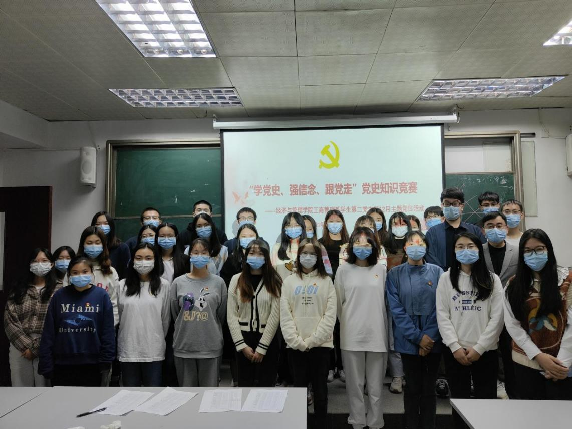12月14日晚上,太阳城工商管理系员工第二党支部于3402教室开展“学党史、强信念、跟党走”党史知识竞赛主题党日。支部书记彭枚芳同志主持活动。