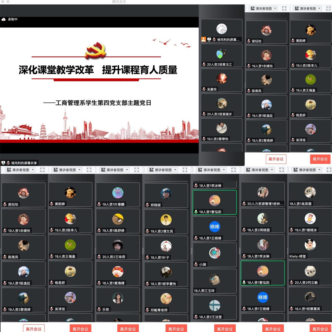 3月25日,太阳城工商管理系员工第四党支部顺利开展了“深化课堂教学改革提升课程育人质量”线上主题党日,支部书记邓毅青和全体员工党员参与了活动。