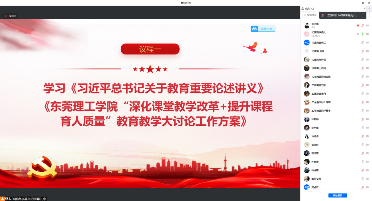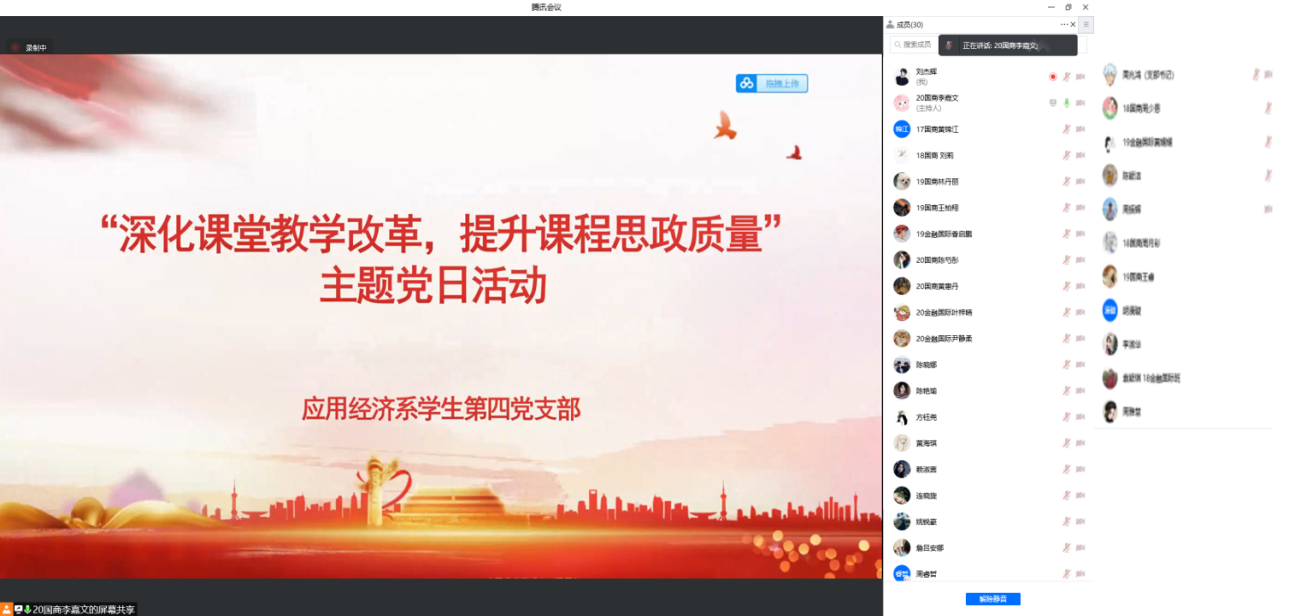 2022年3月25日,太阳城应用经济系员工第四党支部围绕“深化课堂教学改革,提升课程思政质量”主题顺利开展了线上主题党日,支部书记周兆鸿和全体员工党员参与了活动。