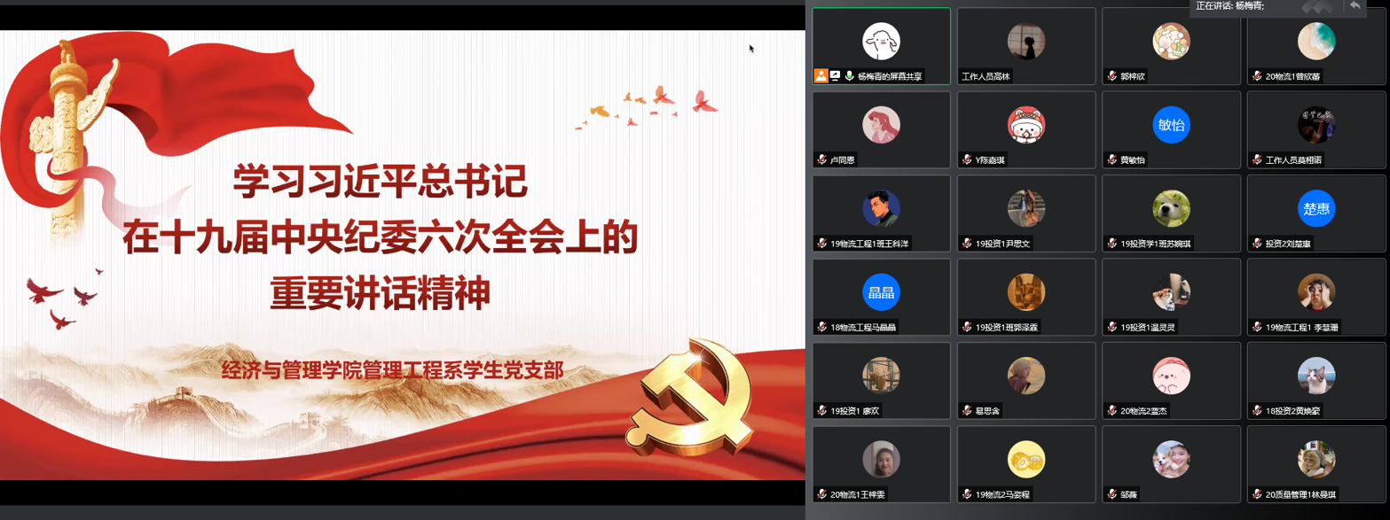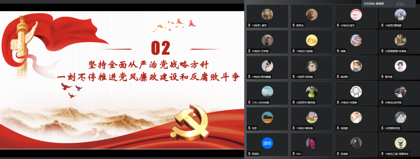 2022年3月25日,太阳城管理工程系员工党支部顺利开展习近平总书记在十九届中央纪委六次全会上的重要讲话精神线上专题学习。支部书记杨梅青和全体员工党员参与了此次学习。