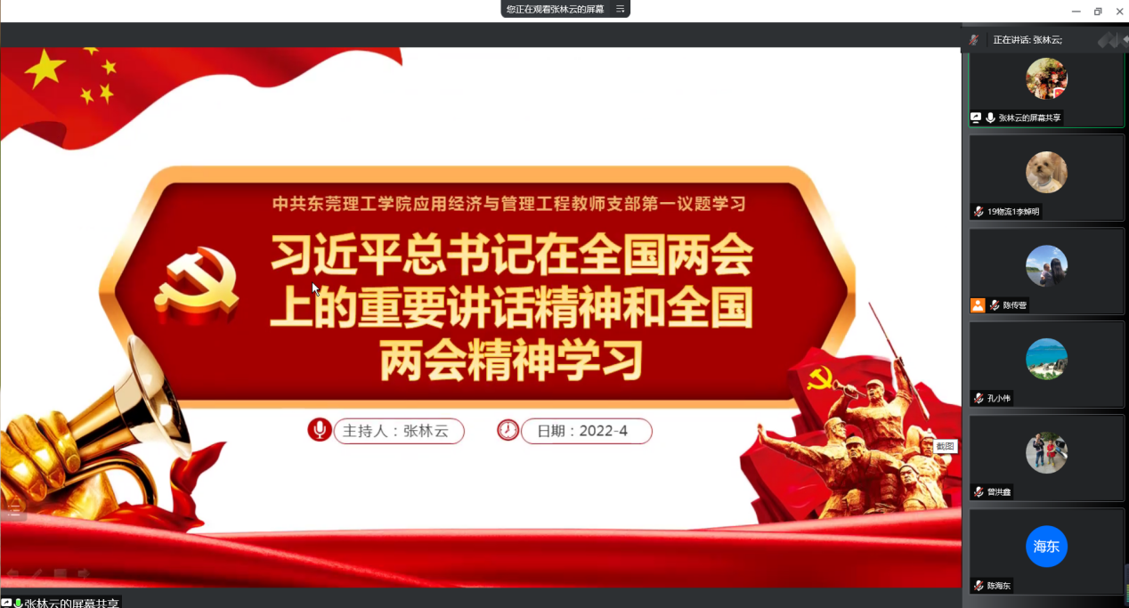 2022年3月31日,太阳城应用经济与管理工程教师党支部召开线上会议,深入学习贯彻习近平总书记在全国两会上的重要讲话精神和全国两会精神。