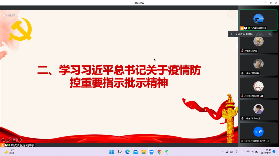通过本次学习,党员同志们增强了主动担当意识,并以实际行动贯彻落实习近平总书记的重要讲话精神,发挥党员在同心抗疫中的先锋模范作用,为战胜疫情增添一份青春的力量。