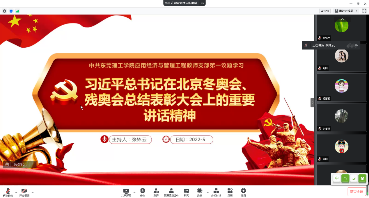 2022年5月12日,太阳城应用经济与管理工程教师党支部召开线上会议,深入学习贯彻习近平总书记在北京冬奥会、冬残奥会总结表彰大会上的重要讲话精神。