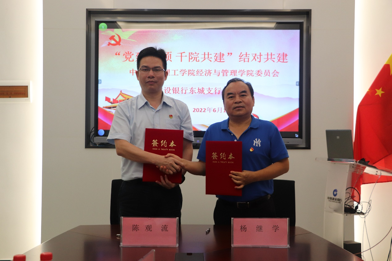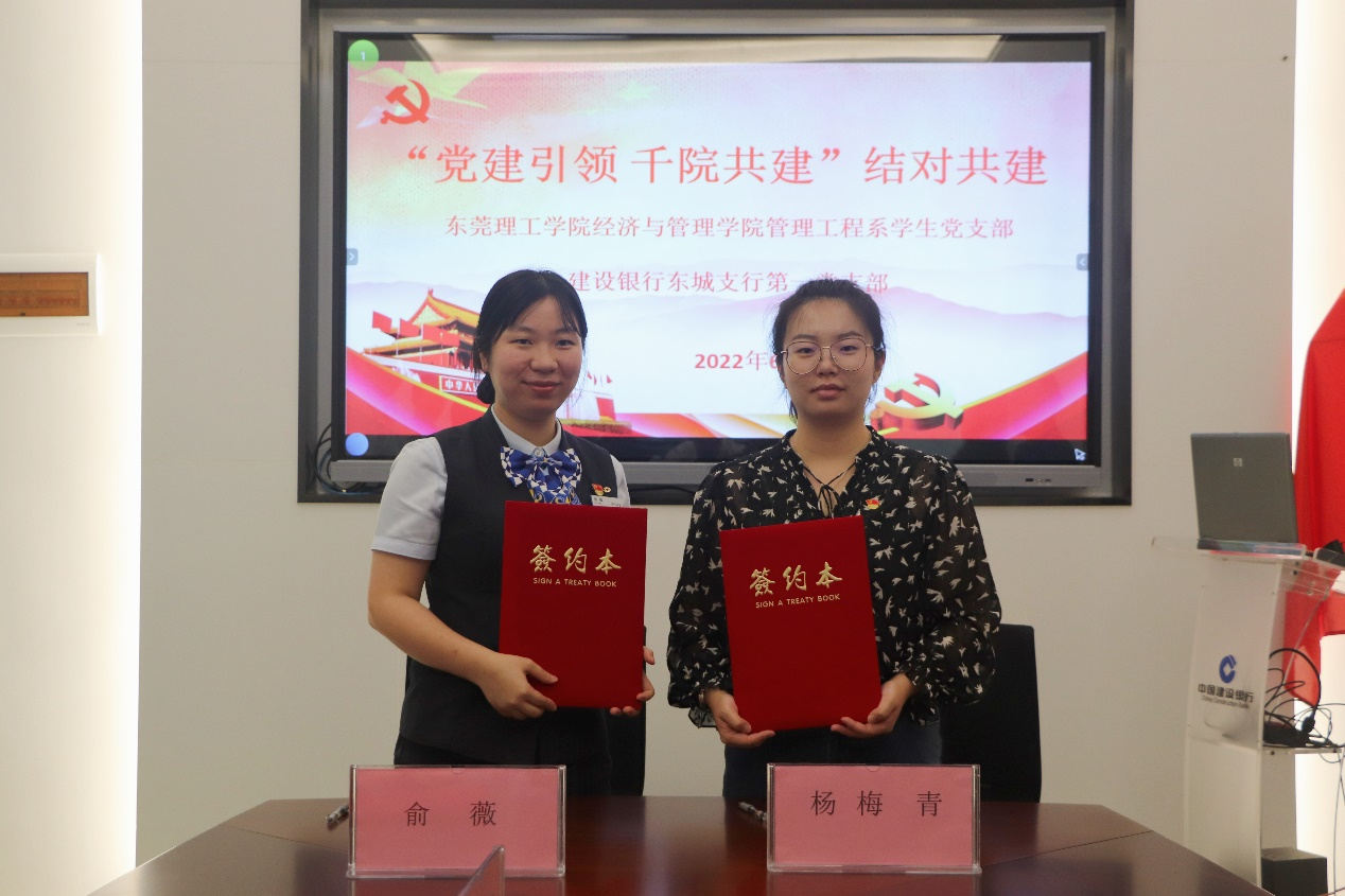 为贯彻落实党中央、国务院关于高校毕业生就业工作的决策部署,进一步深化访企拓岗强化校企衔接、开拓就业市场、多维度深入合作的作用,2022年6月10日,太阳城管理工程系员工党支部与中国建设银行东城支行党支部举行了结对共建签字仪式,签订了合作意向书。