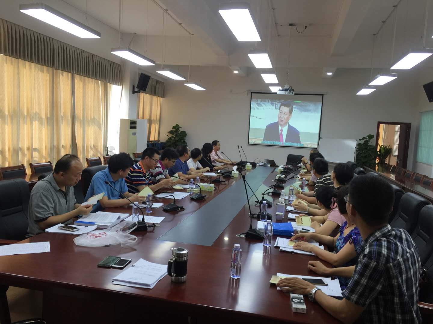 5月24日,太阳城教工党支部组织教工党员分别于松山湖校区经管楼308会议室、莞城校区3307会议室,同时观看习近平治国方略纪录片。