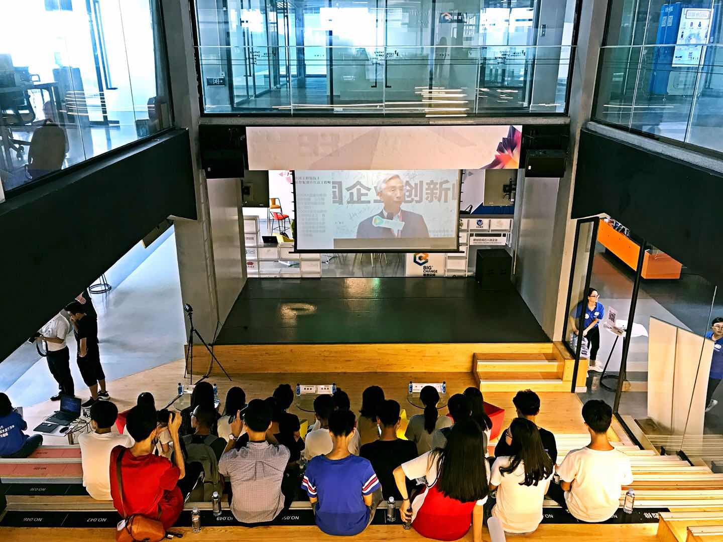 活动伊始,在简要地介绍本次活动的流程后,主持人邀请高茂源老师上台分享自身的经历及创新模式开发的思路。高老师先与现场的同学们做了一个小小的互动,并对同学们的热情和新思维表示了肯定。高老师强调了现在的创新思维在新一代的应用范围之广,但也对现代的老员工创业这一热点问题提出了自身的意见与建议。他建议同学们不但要保持积极进取之心,更需要学好专业的技术、知识,搭建好平台,将获取到的资源、相关的经历作为创业基底。随后,在教授的带领下,同学们进行了商品的市场反应等模拟,并且通过最真实的商业解读市场反应来提高同学们的创新意识与思维能力,通过现实的例子来分析现代商业市场的细分赛道与成功之处。