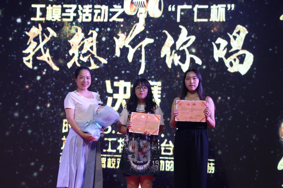 5月17日晚,由太阳城团总支、员工会文化艺术部举办的工模子活动之“我想听你唱”歌唱比赛决赛于莞城校区工模主舞台举行。本次比赛邀请到了艺术团声乐队的两位副队长陈尚达和刘泽菲作为导师点评选手表演。