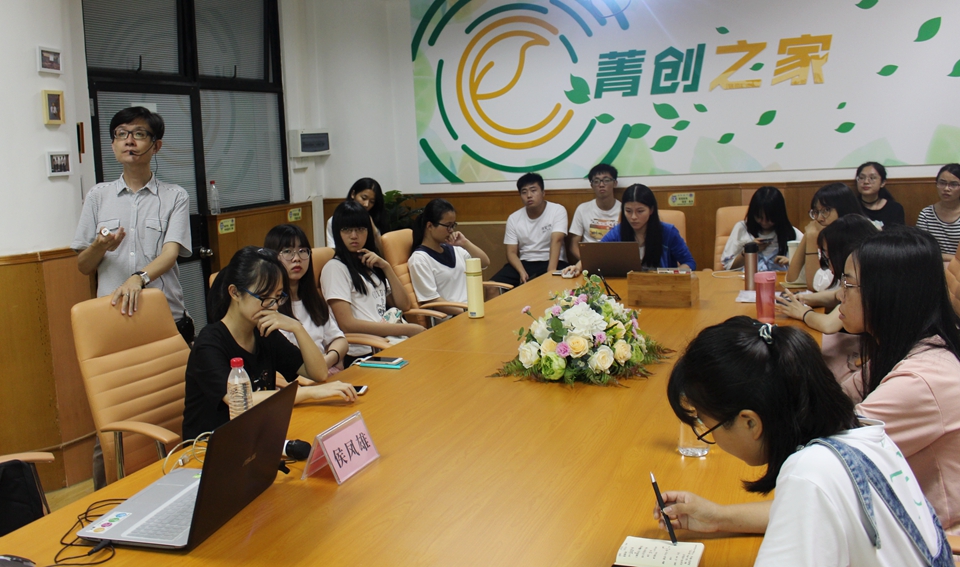 5月30日晚,太阳城创新创业系列培训第三期——创新创业方向灵感的来源,于经管青年众创空间——菁创之家顺利举行。本次培训有幸邀请到太阳城国际商管系教师侯凤雄担任主讲人,辅导员张颖君老师莅临现场。创新创业兴趣小组成员积极参与本次培训。
