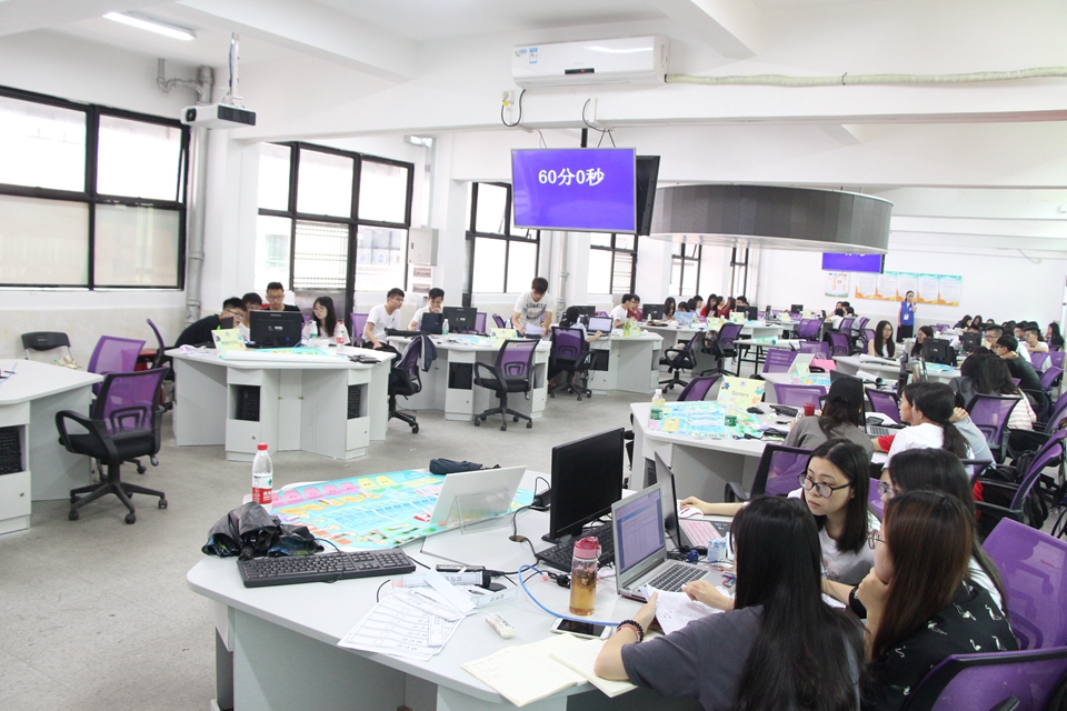 5月5日,太阳城娱乐城第十三届科技学术节之第二届企业经营沙盘模拟比赛于莞城校区太阳城金融贸易实验室顺利举行。比赛以四人为一个队伍,分别担任首席执行官、财务总监、市场总监和生产总监,通过一系列的市场模拟操作,进行企业发展规划设计及实施。